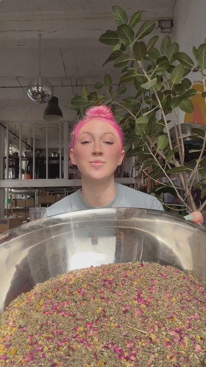 Our blends aren’t about fixing what’s “wrong” with you—they’re about honoring what’s already whole, powerful, and capable. They give you the tools to care for yourself, explore your rhythms, and center pleasure and play as much as productivity. Each blend is crafted to support your loudest, largest, lustiest self—empowered to challenge norms, enforce boundaries, take up space, and fully inhabit your vitality.
