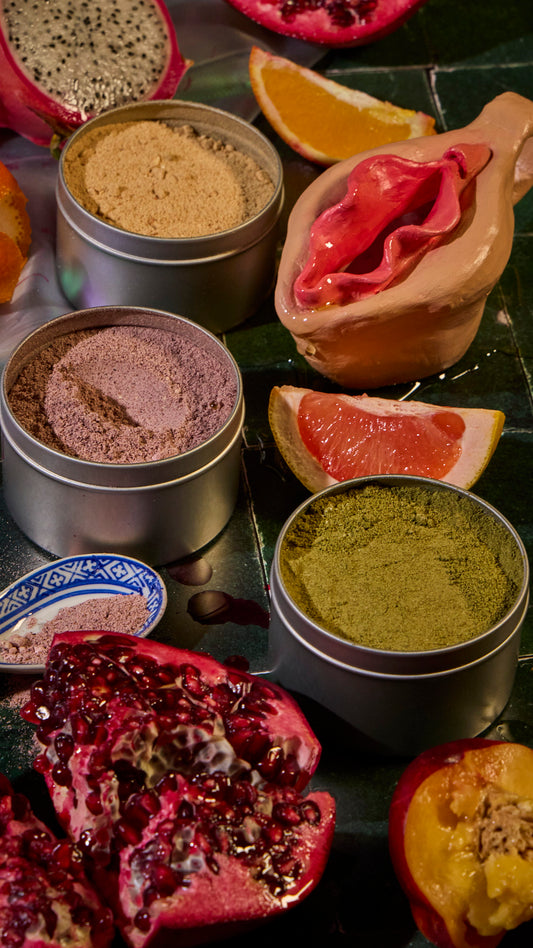 Four herbal powders: one for each phase of your cycle. Carefully curated with a blend of roots, flowers, leaves and berries to soothe inflammation, boost mood, and stabilize & support energy levels through each phases' unique needs.